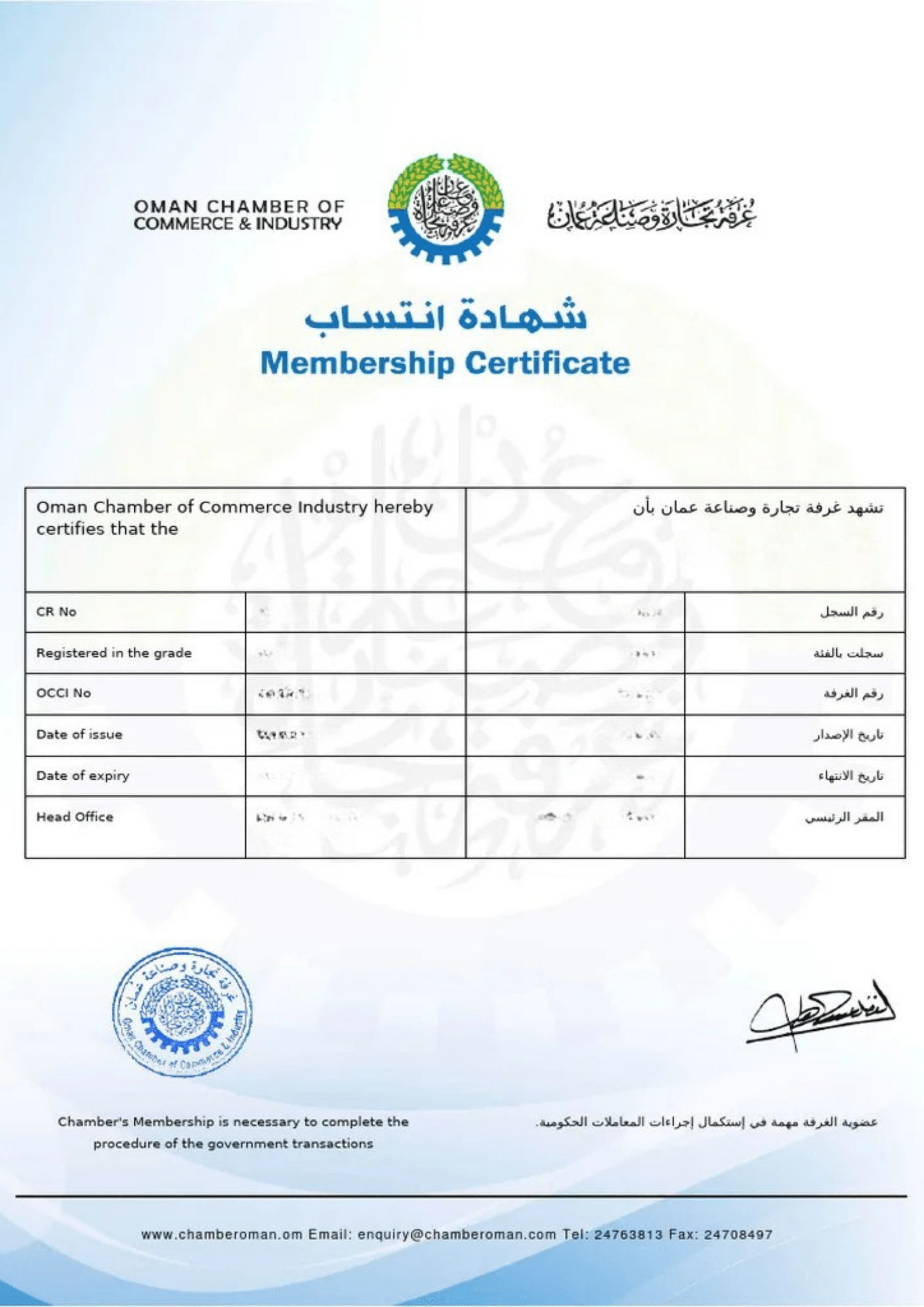 Mandatory OCCI membership certificate for all Oman businesses