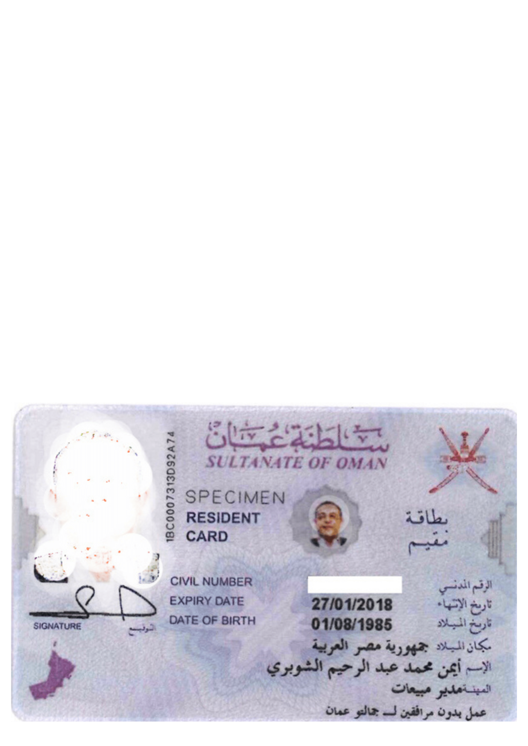 Biometric registration and collection of your Oman residency ID card. You're ready to operate.