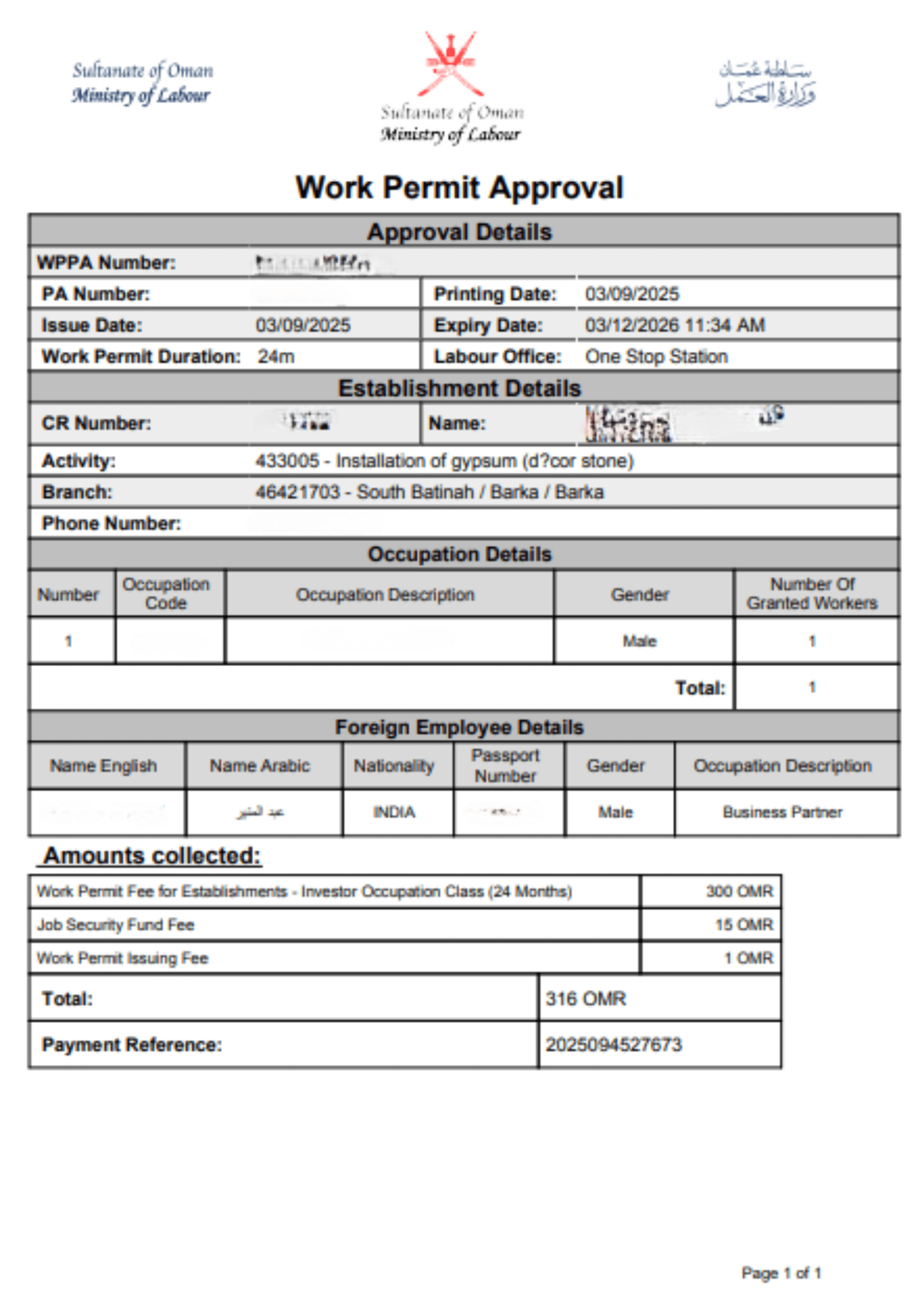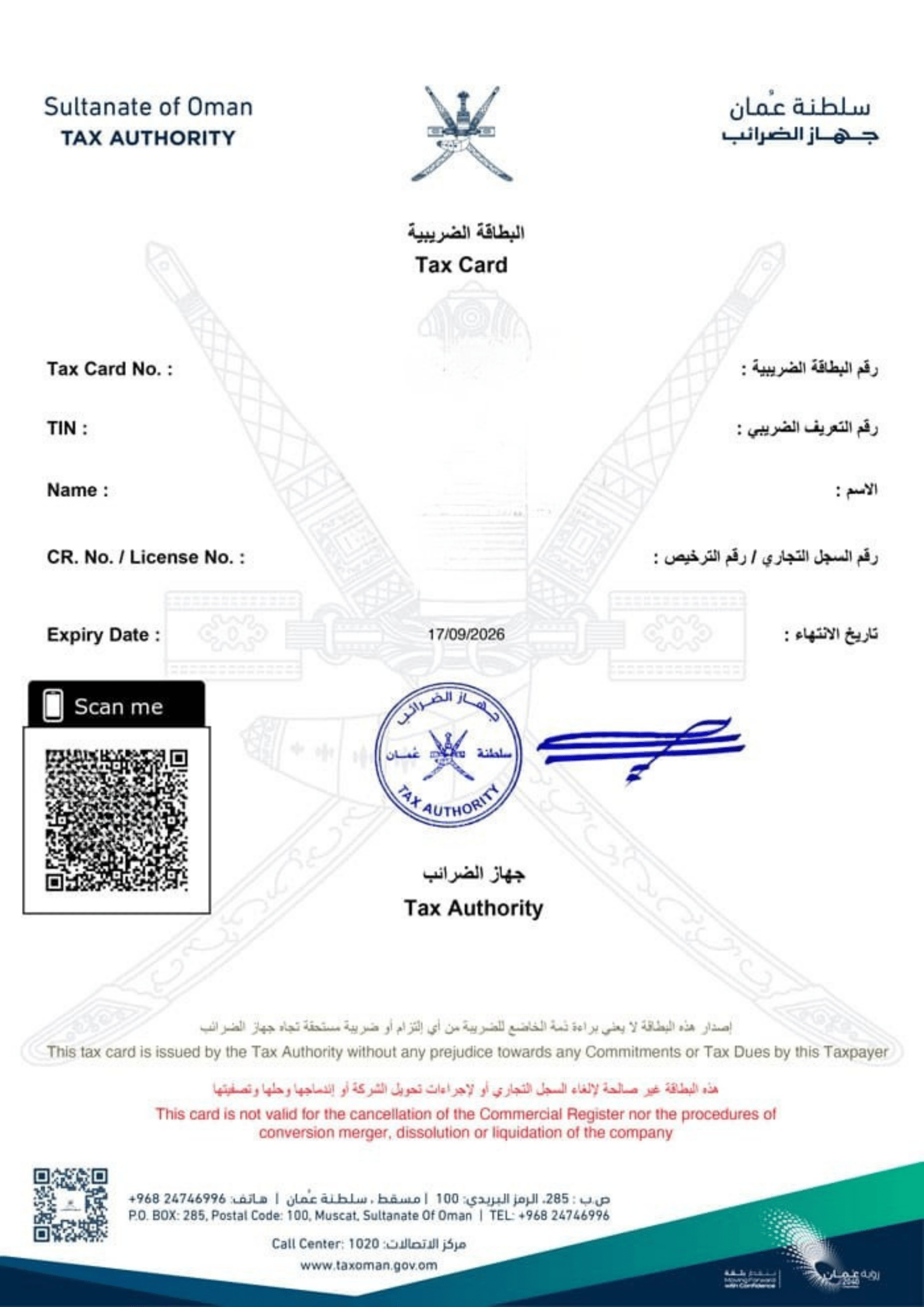 Issued by MOCIIP your company's official legal identity in Oman