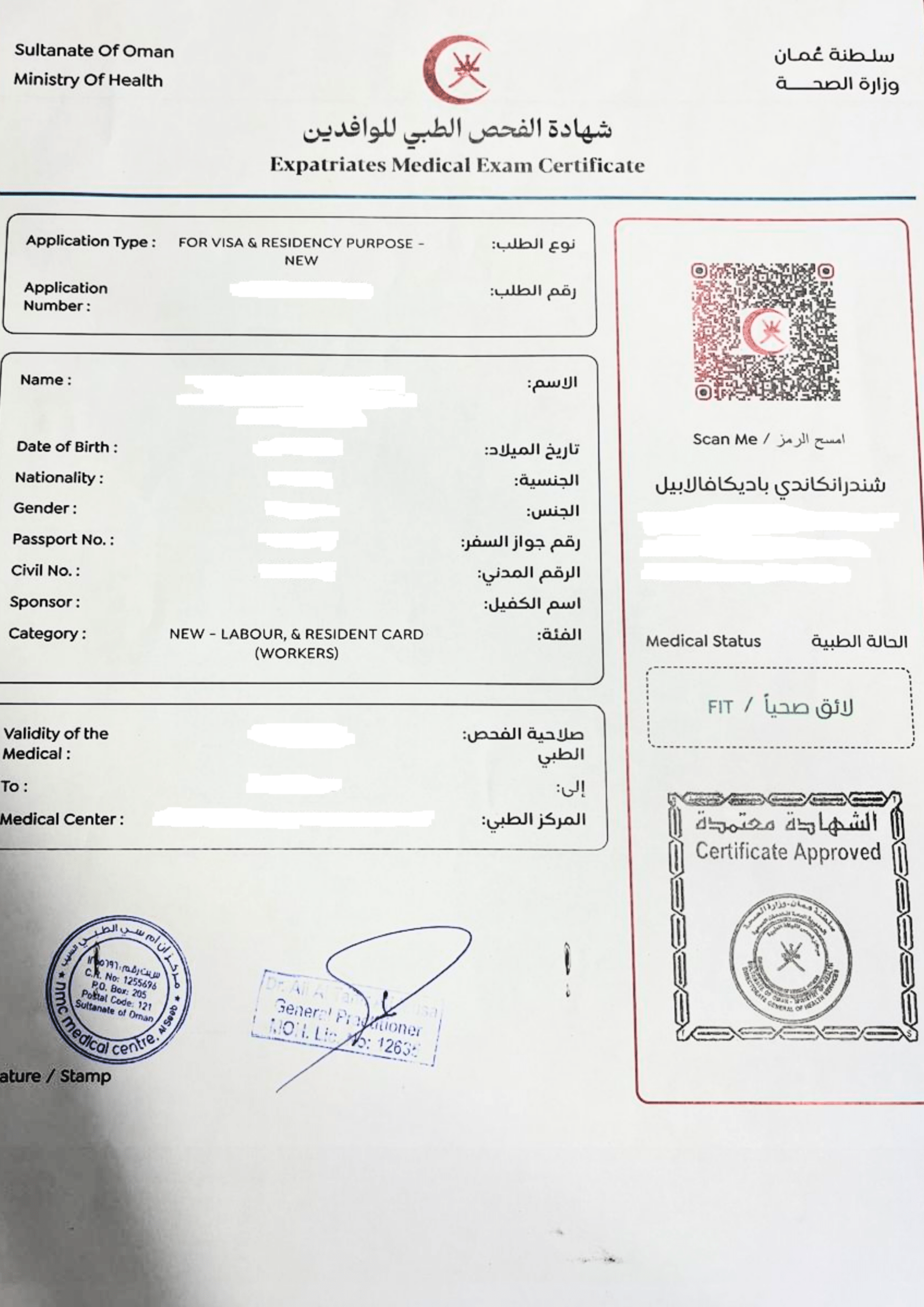 Mandatory screening and medical fitness certificate for residency